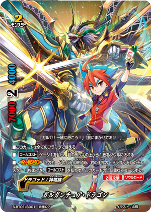 Deity Dragon Tribe (or DDT) is the new "Gao" style attribute for Buddyfight Ace. Used by the son of the original Buddyfight Protagonist, Yuga Mikado. The aesthetic of DDT is a lot like classic Armordragons, but added in more regalia with jewels and fancier armor designs. Unlike Armordragons which had a basic overall beat down with a flexible amount of usage in its early days, Deity Dragon Tribe focuses highly on Gargantua Dragon, from the items even being locked primarily towards him, so Gargantua Dragon will be your main deck for the longest time. It is interesting however that Gargantua Dragon is not the usual Dragon World card, but is affiliated with no world. His deck for now is just Dragon World due to the support, but it is highly likely in the future that their could be Gargantua in various new Attributes in different worlds, or just Deity Dragon Tribe being a multiple world attribute like Thunder Empire, but without the flag to use it all at once. The playstyle however is also straightforward. Gargantua Dragon where you usually put Buddies, your choice of Garblade or Garchris, Lanze Gardragon and the upgraded Gargantua Punisher. THAT'S ALL YOU NEED....if that were true. Gargantua Dragon also has the iconic ability of <G-EVO> that whenever he finishes attacking, he can evolve into another Gargantua Dragon (Either a new base form or a mode) from your hand without paying the [Call Cost] of the upgraded mode. You swing with your 8 crit Blast Mode AND THEN hit them with the punisher to win. Simple game-play wise and it fits well with all over Dragon World Mikado style decks. If you need to choose the Main Characters deck, or you find the aesthetic charming, over find the mode gimmick a nice addition to the usual Dragon World snoozefest, check out DDT! You can get them by buying the first S Start Deck: Dradeity coming out (Supposedly) July 27th and upgrading with the first S Booster: Gargantua Awakened on August 31st!